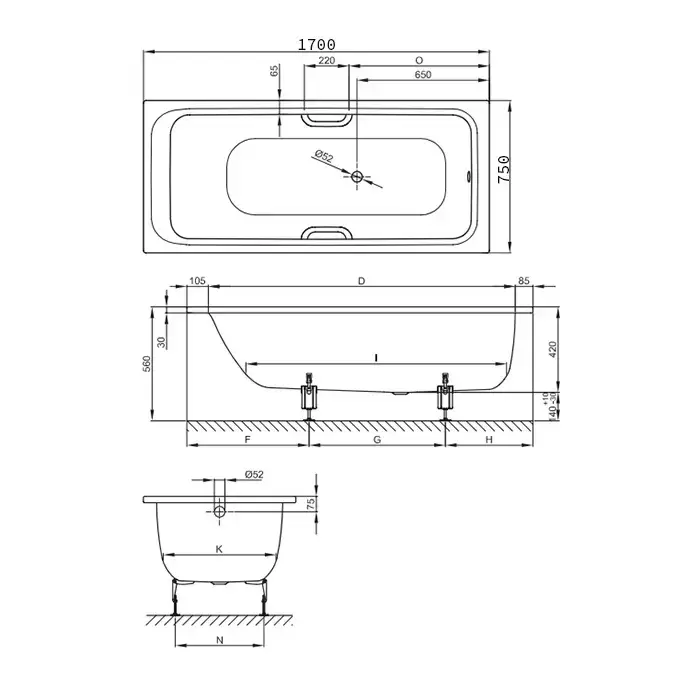 Bette Select Ванна с шумоизоляцией 170х75х42 см, встраиваемая, цвет: белый
