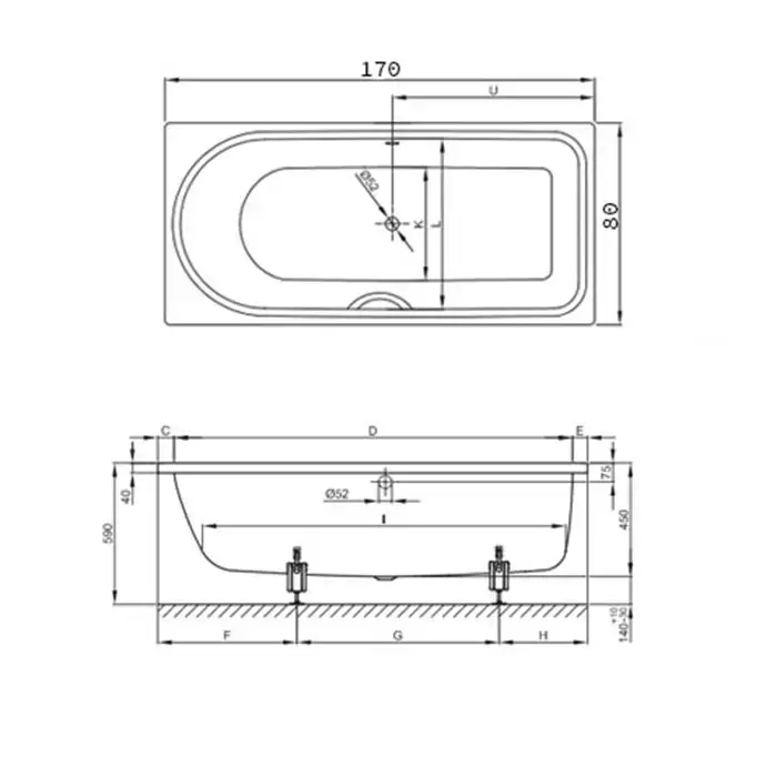 Bette Set Ванна 170х80х38 см, встраиваемая, BetteGlasur® Plus, цвет: белый