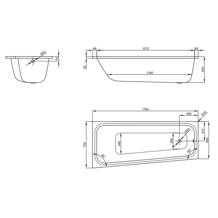 Bette Space S Ванна встраиваемая с шумоизоляцией 170х75х42 см, исполнение левое , цвет: белый