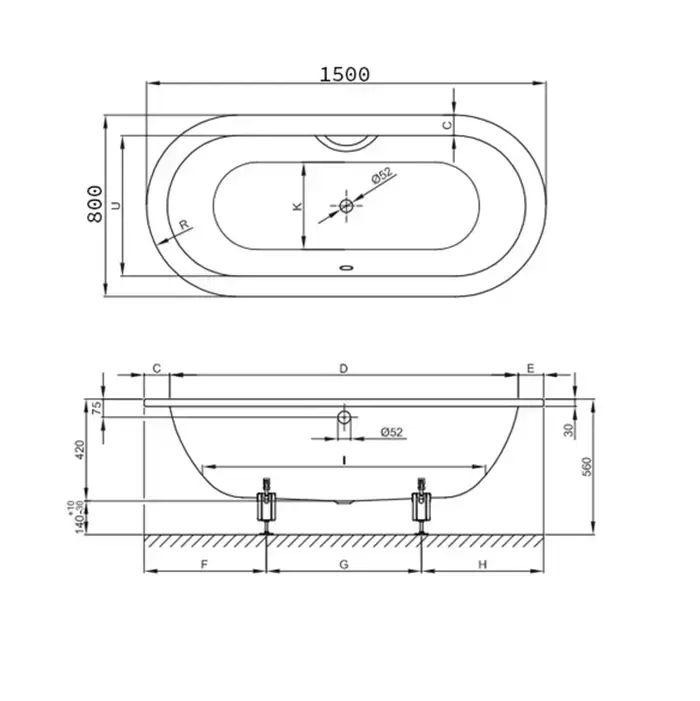 Bette Starlet Ванна с шумоизоляцией встраиваемая, 150х80х42 см, BetteGlasur® Plus, цвет: белый