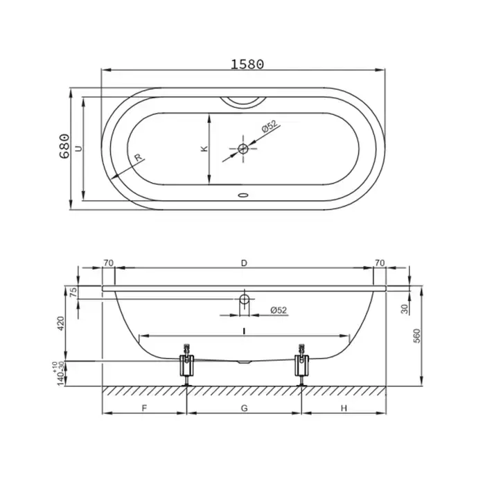Bette Starlet Ванна с шумоизоляцией встраиваемая, 158х68х42 см, BetteGlasur® Plus, цвет: белый