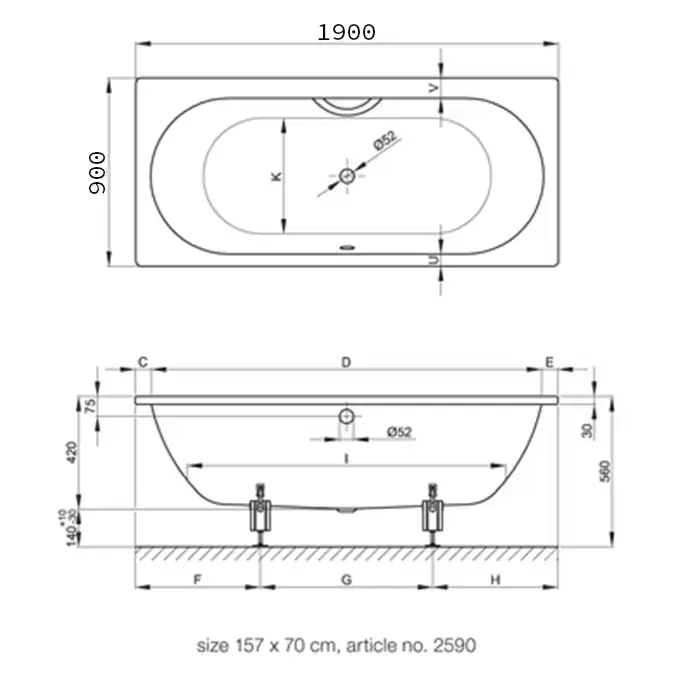Bette Starlet Ванна с шумоизоляцией встраиваемая, 190х90х42см, (для удлиненного слива-перелива), цвет: белый