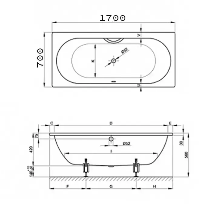 Bette Starlet Ванна встраиваемая, 170х70х42см., с шумоизоляцией, цвет: белый
