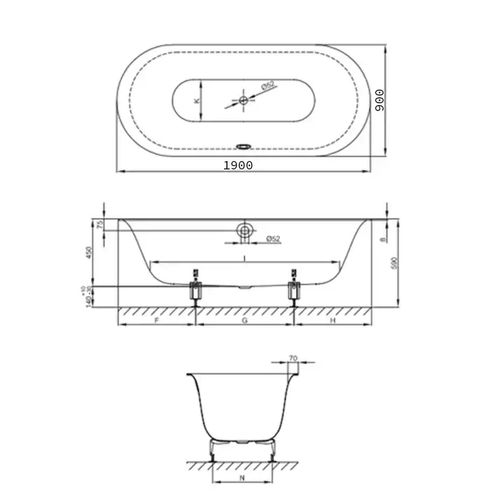 BetteLux Oval Ванна встраив. овальная с шумоизоляцией 190x90x45 см, с покр.Glaze Plus/анти-слип, черный матовый 035