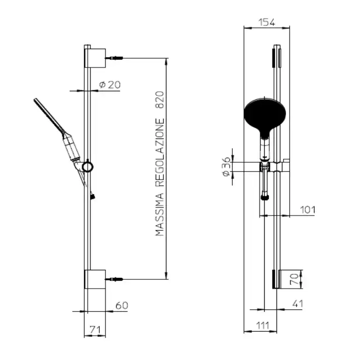 Bossini Apice Душевой гарнитур: штанга для душа с ручным душем и шлангом 150см., цвет: хром