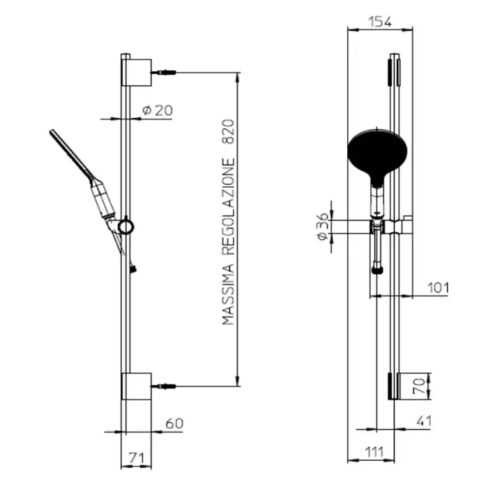 BOSSINI APICE Комплект для душа с штангой, ручным душем APICE Ø 140 и шлангом 1500 мм., цвет черный матовый