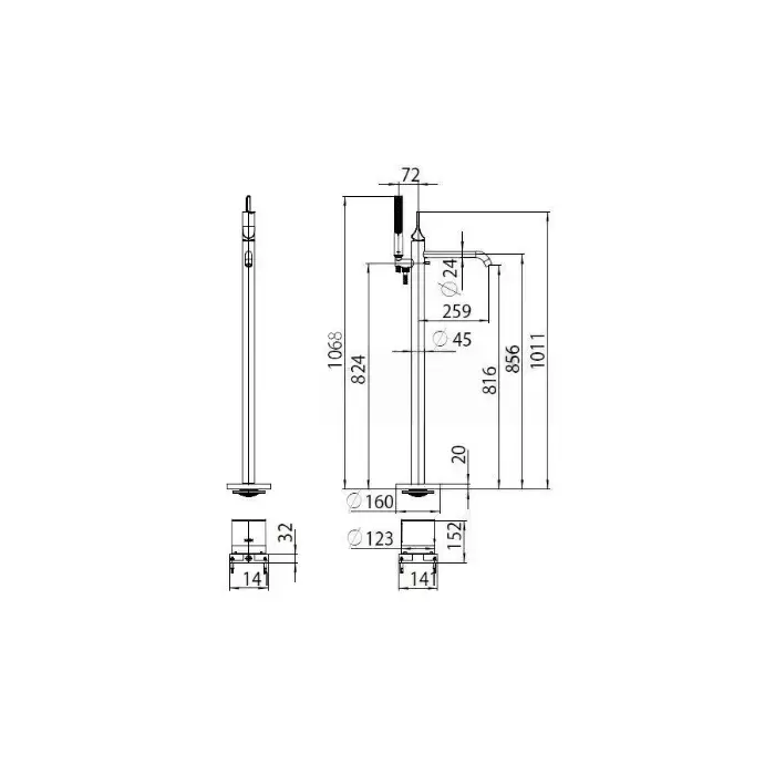 Bossini Apice Смеситель для ванны, напольный, с ручным душем, цвет: черный матовый