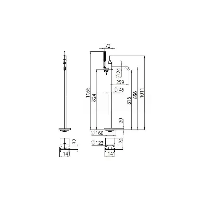 Bossini Apice Смеситель для ванны, напольный, с ручным душем, цвет: золото