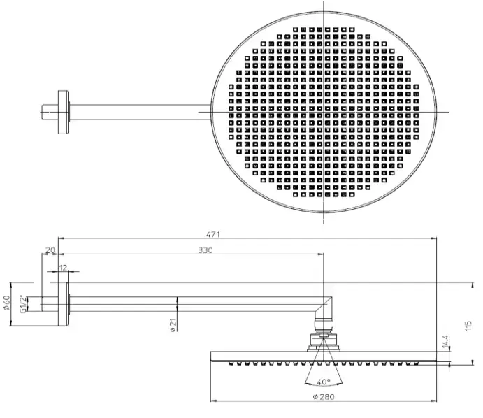BOSSINI APICE Верхний душ Ø280 мм., с настенным держателем 330 мм., цвет браашированный никель