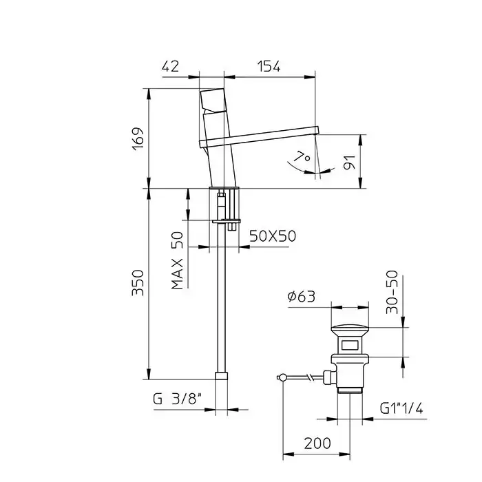 Bossini Cube Смеситель для раковины, на 1 отв., c заглушкой 1”1/4, цвет: никель шлифованный