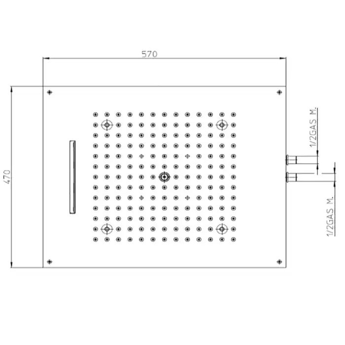 BOSSINI DREAM/2 Верхний душ 570 x 470 мм, с 4 LED RGB, 2 режима (дождь, каскад), блок питания/управления, Cromoterapia, цвет: золото