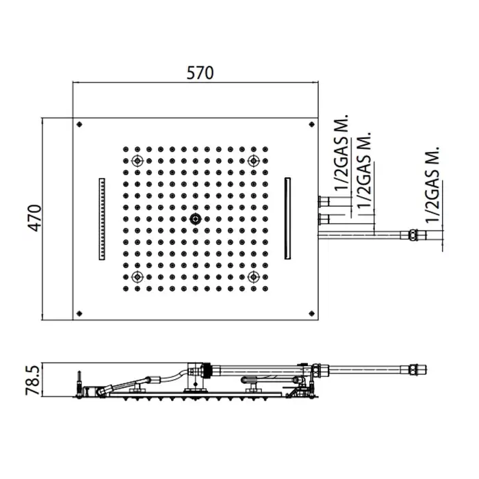 BOSSINI DREAM/3 Верхний душ 570 x 470 мм, 3 режима (дождь, каскад, водопад), с 4 LED (белый), блок питания/управления, цвет: хром