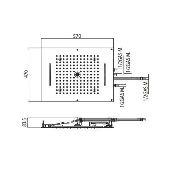BOSSINI DREAM/4 Верхний душ 570 x 470 мм, 4 режима (дождь, каскад, водопад, моноструя), с 4 LED (белый), блок питания/управления, цвет: хром