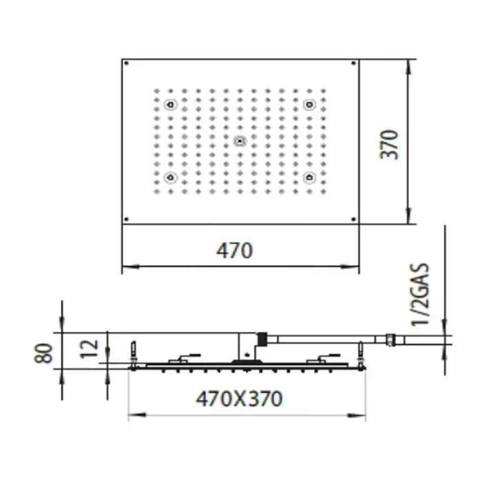 BOSSINI DREAM-RECTANGULAR Верхний душ 470 x 370 мм с 4 LED RGB, блок питания/управления, Cromoterapia, цвет: хром