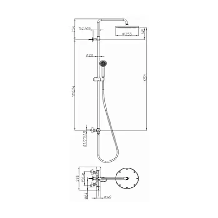Bossini Elios Настенная колонна: Душ из ABS, Ø250 ручной душ, смеситель термостатический или встроенным переключателем, цвет: хром