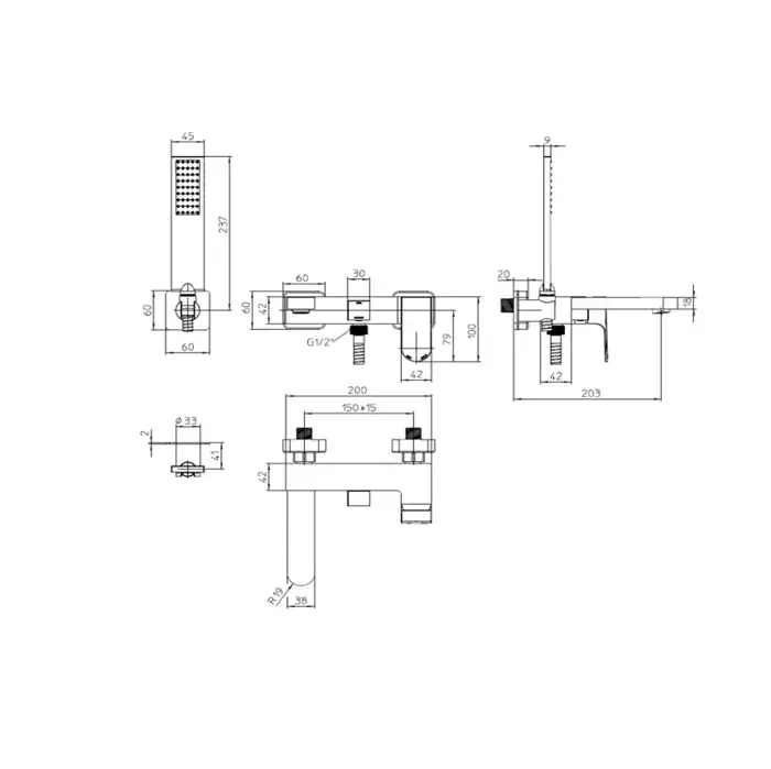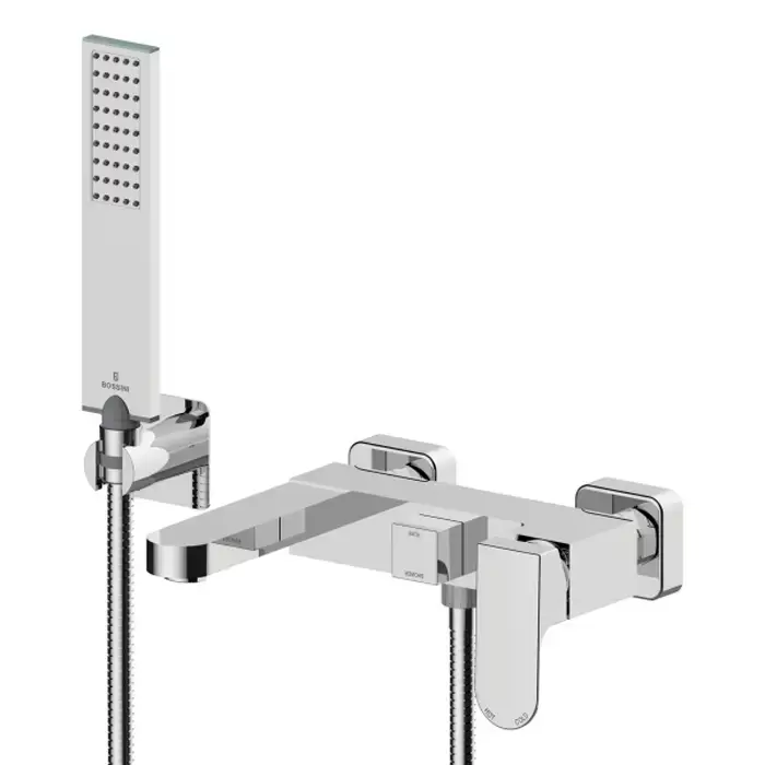 Bossini Gillo Комплект наружный для ванной GILLO, лейка Flat-one, Душевой держатель фиксированный из латуни, шланг из латуни 125 см.., цвет: хром