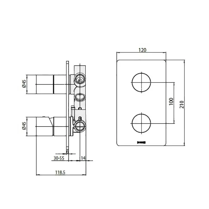 Bossini Inox Смеситель для душа, встраиваемый, с девиаторм 1/2/3/4/5, цвет: сталь брашированная