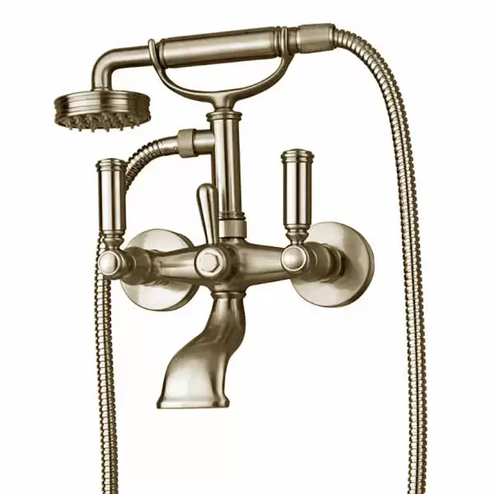 Bossini Liberty Смеситель наружный для ванной с переключателем, лейка LIBERTYцвет:GOM, шланг из латуни дв. фальцевания 150 см, цвет: никель матовый
