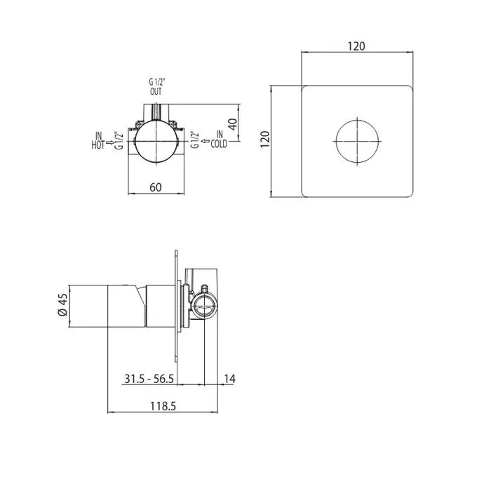 Bossini Nobu Внешняя часть для монорычажного встраиваемого смесителя на 1 выход., цвет: нержавеющая сталь