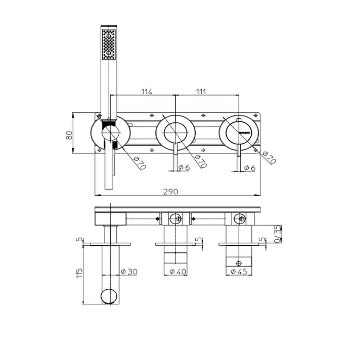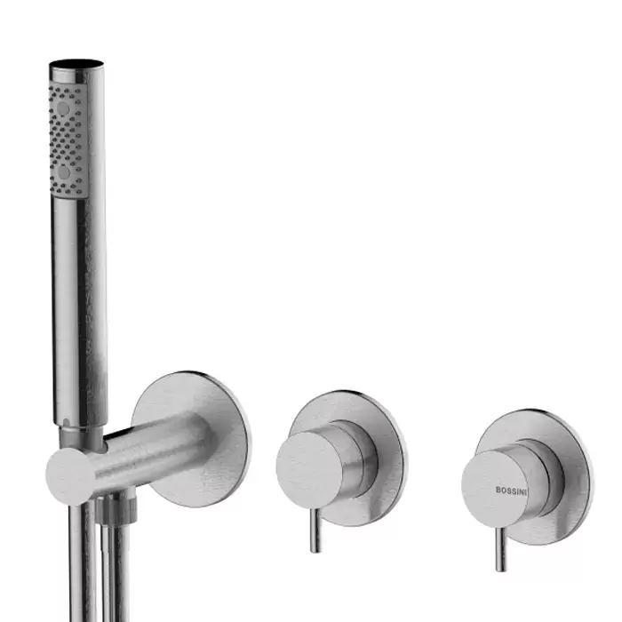 Bossini Nobu Встраиваемый монорыч. смеситель для душа, с перекл.на 2 вых, душ. набор Zen-Inox с гибким шлангом Cromolux 150 см., цвет: нержавеющая сталь