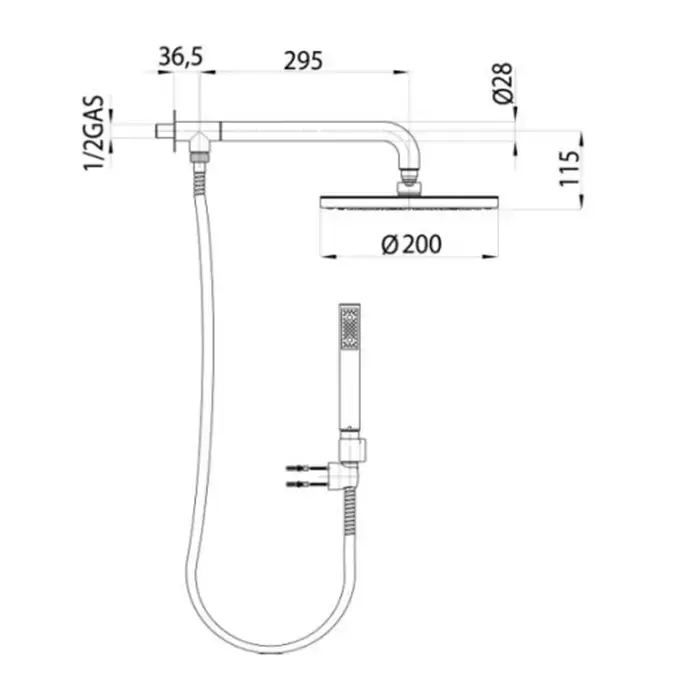 Bossini Oki Комплект для душа с верхним душем Ø200 мм. с держателем 331,5 мм. из стены, с ручным душем, настенным держ и шлангом 1500 мм., цвет: хром