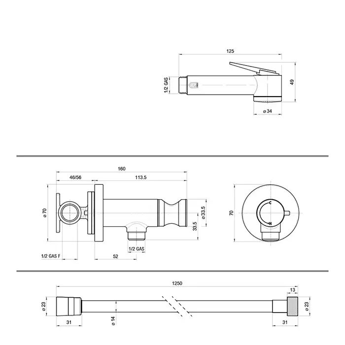 Bossini Paloma Flat Гигиенический душ с прогрессивным смесителем, лейка пластиковая, шланг Cromolux, цвет: хром