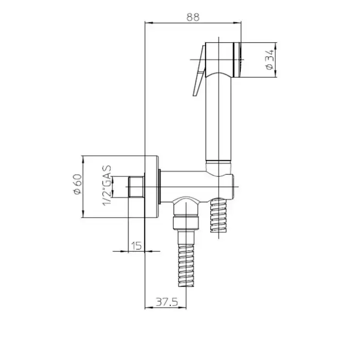 Bossini Paloma Гигиенический душ, лейка, держатель со штуцером, шланг, цвет: хром
