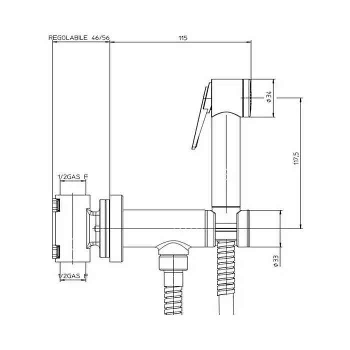 Bossini Paloma Гигиенический душ с прогрессивным смесителем и шлангом 125см., цвет: черный матовый