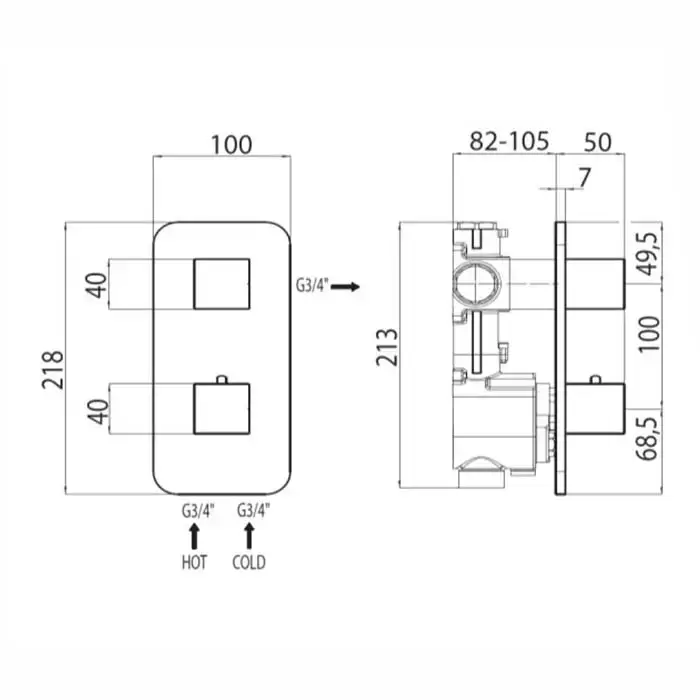 Bossini Rectangular Термостат для душа, встраиваемый, с девиаторм/запорным вентилем на 1 или 2 выхода, уст-ка верт/гор., цвет: хром