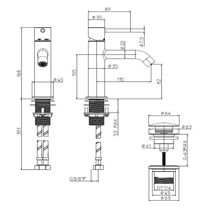 Bossini Teo M Смеситель для раковины, 1 отв., с донным клапаном, цвет: черный матовый