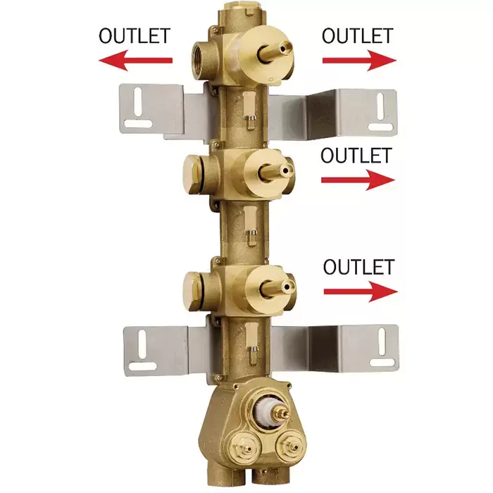 Bossini Встраиваемая часть термостата с 2 запорными клапанами и дивиатором на 2 выхода, (4 выхода) высокой пропускной способности на ¾”, уст-ка верт/гор.