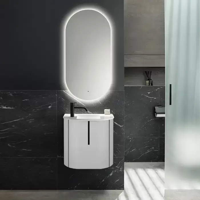 Burgbad Lavo 2.0 Комплект мебели 53х35х49.2см., с 1 отверстием для смес. слева, 1 дверь, раковина белая Velvet, ручка черная, подвесной, цвет белый глянцевый