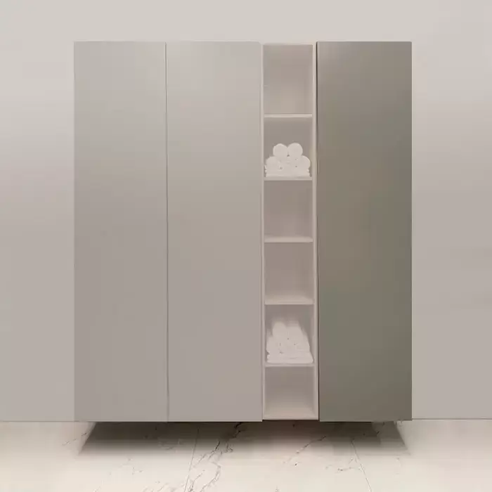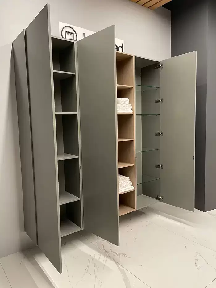 Burgbad Пенал подвесной 50хh196х37cм, RX, петли справа, дверь push-open, 4 стеклянные полки, цвет: Grey matt