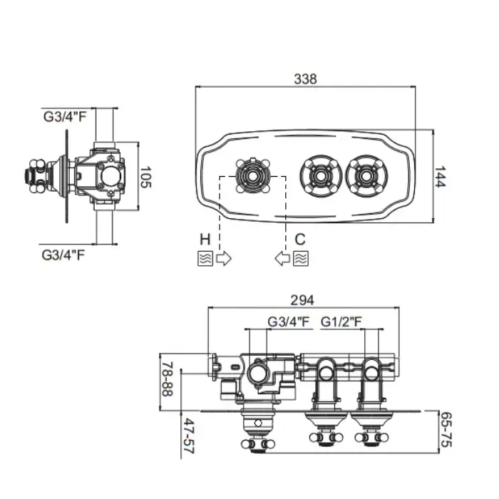 Carimali Colonial Смеситель термостатический, встраиваемый, на 2 выхода, цвет: хром