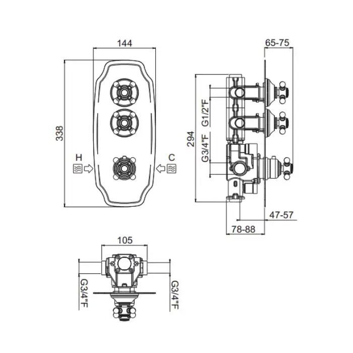 Carimali Colonial Смеситель термостатический, встраиваемый, на 2 выхода, цвет: хром