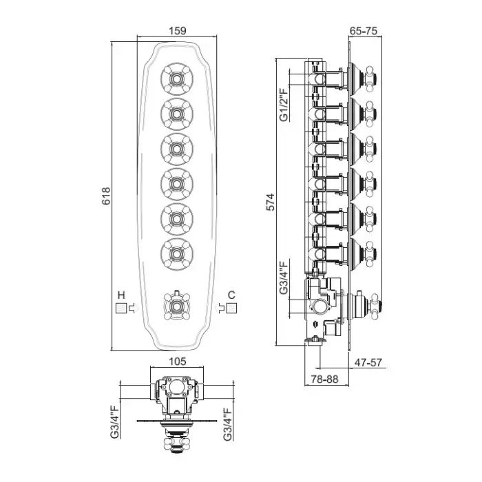 Carimali Colonial Смеситель термостатический, встраиваемый, на 6 выходов, цвет: хром