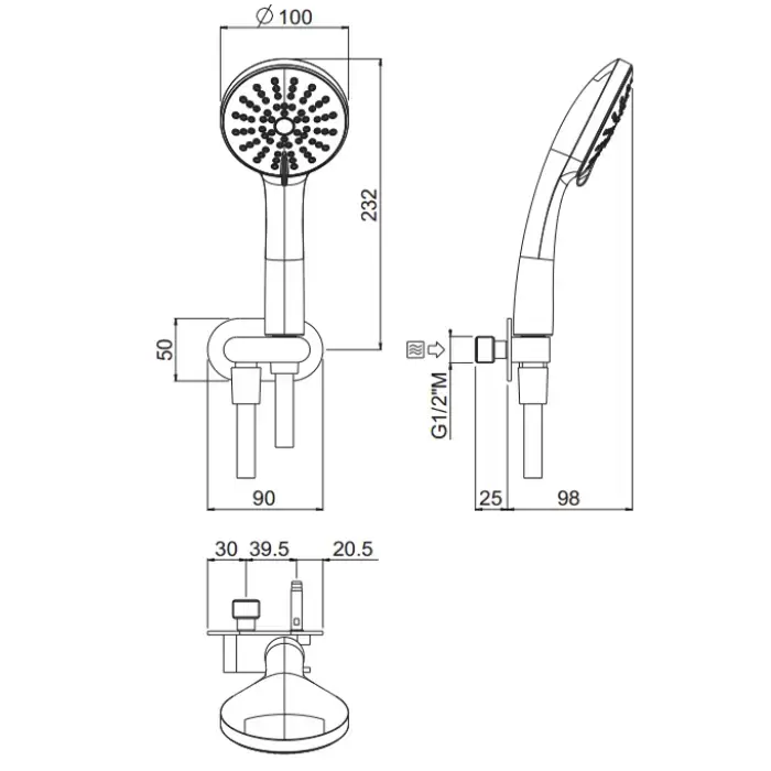 Carimali Duplex Душевой комплект с ручным душем, держателем и шлангом 150см., цвет: хром