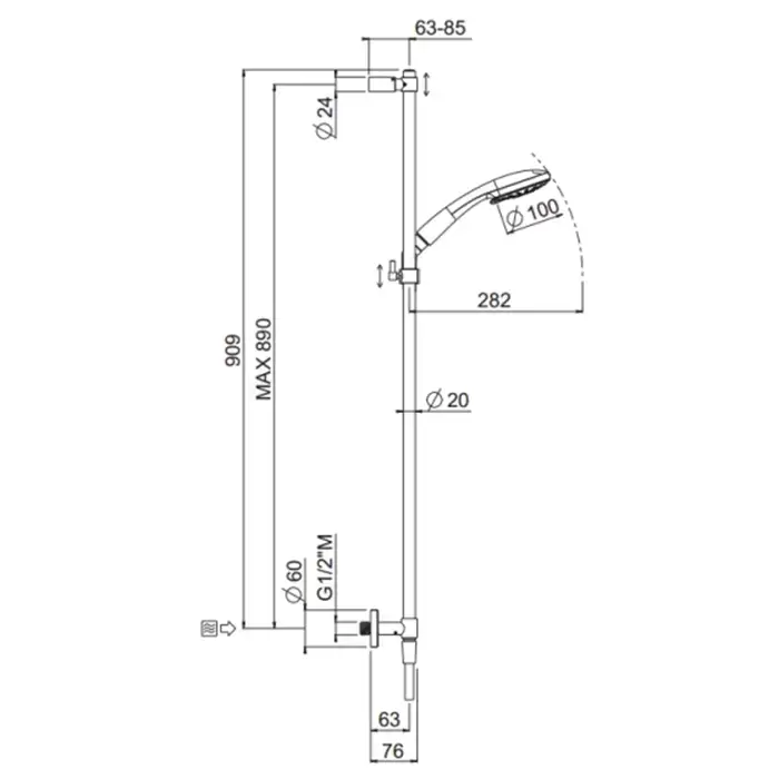 Carimali Duplex Штанга с ручным душем, цвет хром