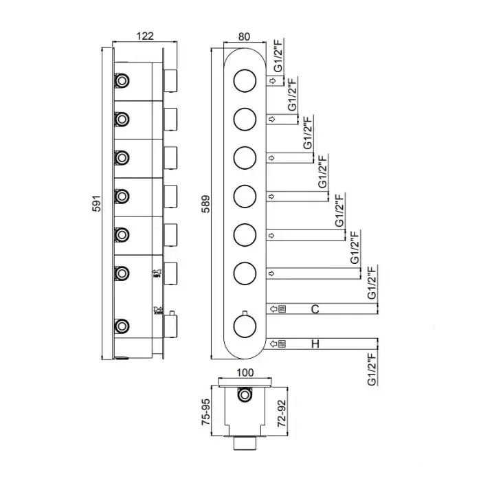 Carimali ilTondo Смеситель для душа, встраиваемый, термостатический, цвет: хром