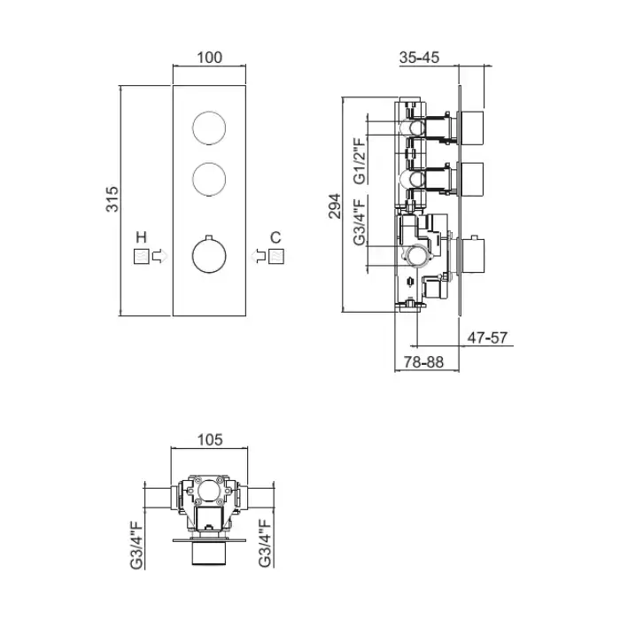 Carimali ilTondo Смеситель термостатический, встраиваемый, на 2 выхода, цвет: хром