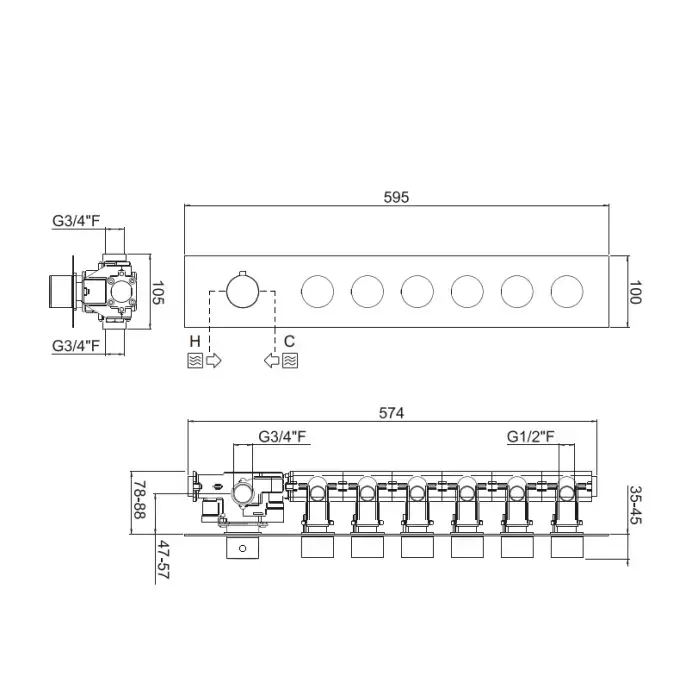 Carimali ilTondo Смеситель термостатический, встраиваемый, на 6 выходов, цвет: хром