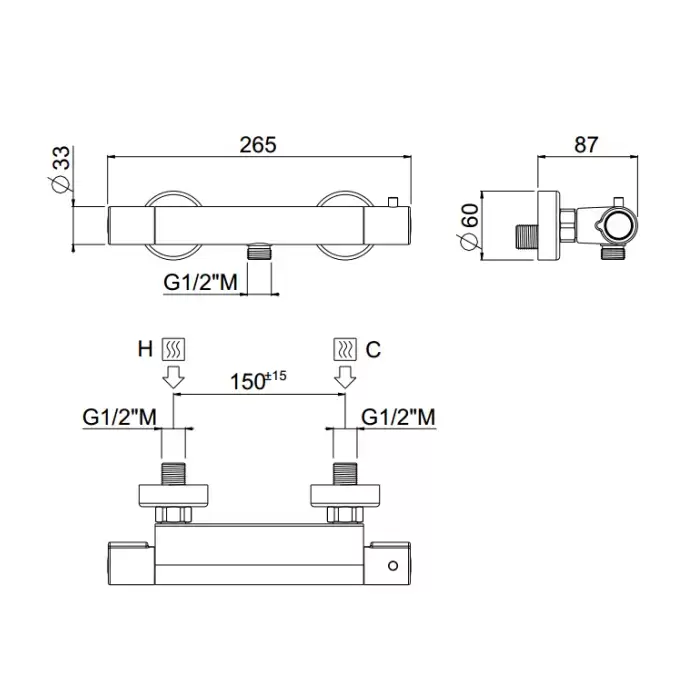 Carimali Rigoletto Термостатический смеситель для душа, латунный, 1 выход, цвет: хром