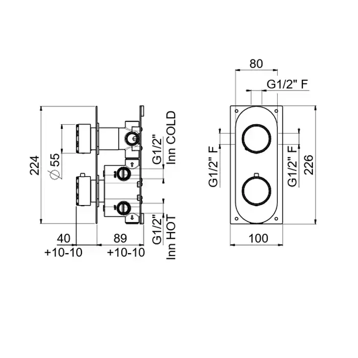 Carimali Still Oh Смеситель для душа, встраиваемый, термостатический, на 2 выхода, цвет: хром