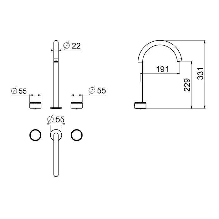 Carimali Still Oh Смеситель для раковины, на 3 отв., высокий, цвет: хром