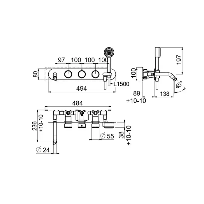 Carimali Still Oh Смеситель для ванны, встраиваемый, термостатический, на 2 выхода, излив и ручной душ, цвет: хром