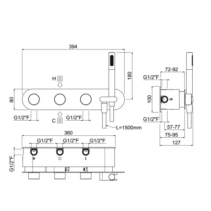 Carimali Встраиваемая часть для горизонтального прогресивного смесителя c держателем для душа, 4 выхода,.цвет: хром