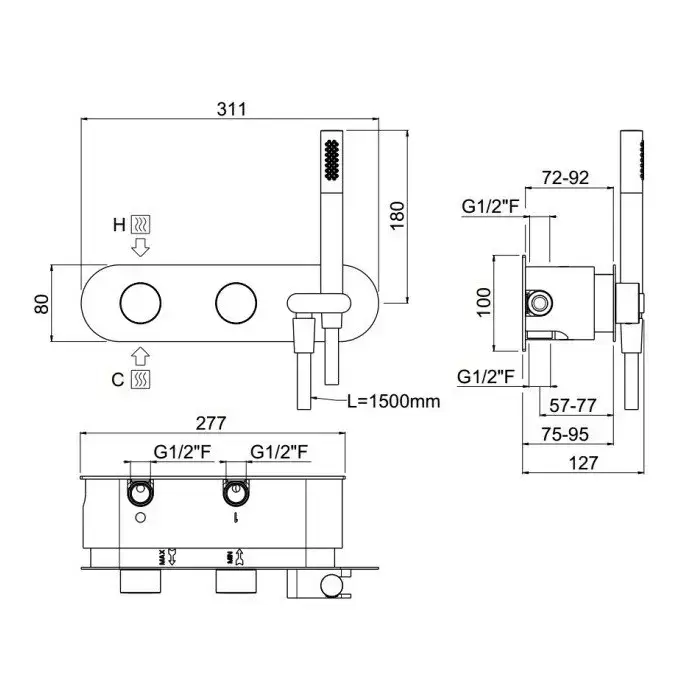 Carimali Встраиваемая часть прогрессивного смесителя с держателем для душа на 3 выхода, цвет: хром