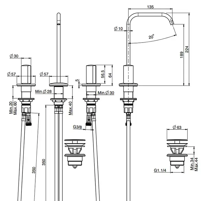 Carlo FraCarlo Frattini So Смеситель для раковины, на 3 отверстия, вращающийся излив Ø 10 мм., с донным клапаном click-clack, цвет: хром