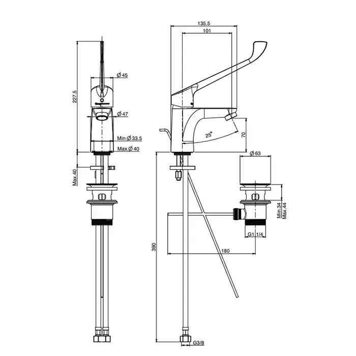 Carlo Frattini Collettivita Смеситель на раковину, для лечебных учреждений, с донным клапаном, цвет: хром