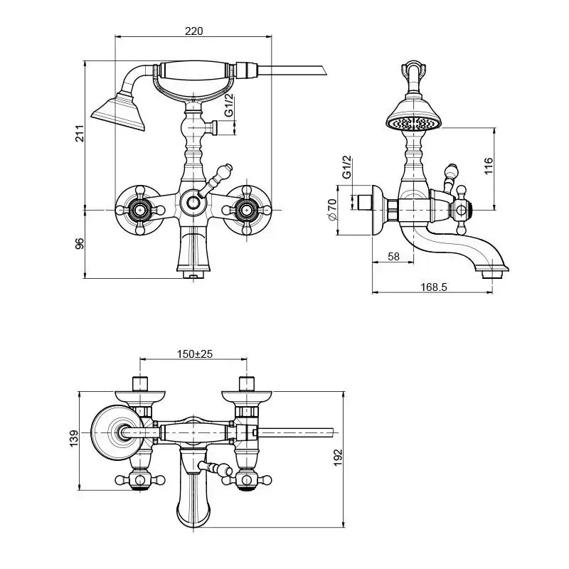 Carlo Frattini Elizabeth, Смеситель для ванны с душевым комплектом, цвет: Хром